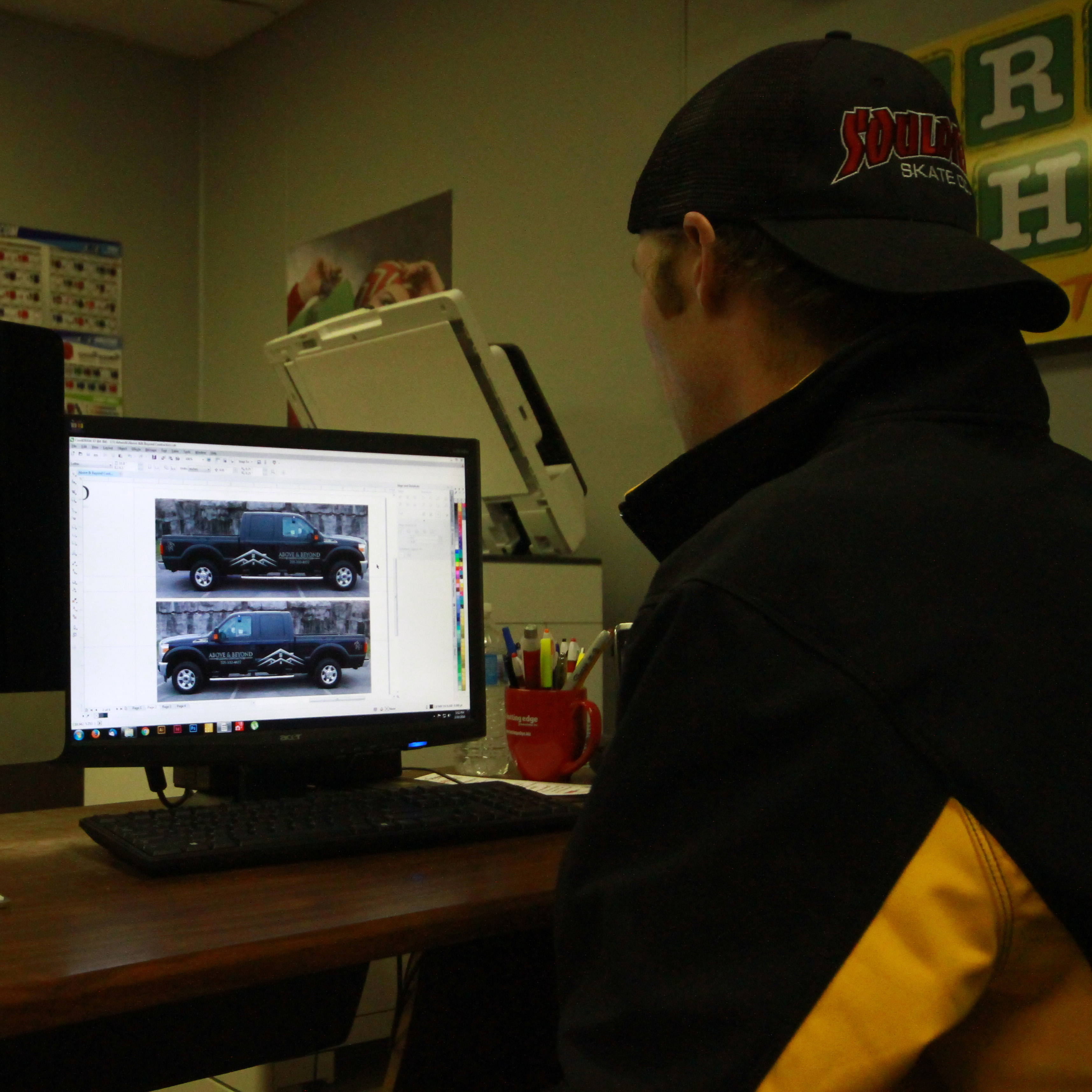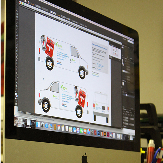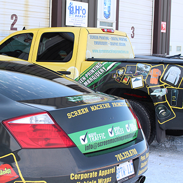 Everything is printed on our 54 inch Roland VersaCAMM top of the line, wide format printer. It has the capability of printing on tons of different medias like removable and perforated vinyl for substrates including vehicle wraps, bumper stickers, banners, signage and much more.
